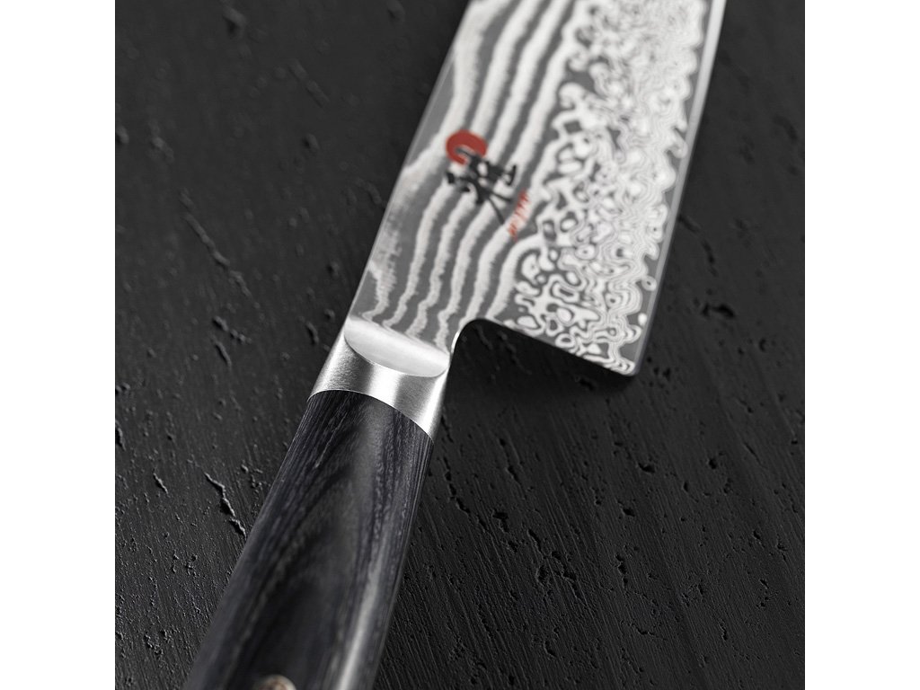 The D-shaped handle provides perfect cutting control and effective support during slicing. The sturdy handle made of exotic Cocobolo Pakka wood is not only perfectly balanced but also dimensionally stable. The dark shade of the wood gives a luxurious impression. The elegance of the dark handle is enhanced by sophisticated decorative elements. The decent decorative line is done in red which in Japan symbolizes passion, sincerity and enthusiasm. The fine detail in the form of a mosaic pin and stainless steel base with logo, will illustrate the atmosphere of the Far East. The perfect balance of the knife brings comfort and prevents hand fatigue. MIYABI 5000FCD knives will fully satisfy your desire for a precision tool of Japanese origin.
