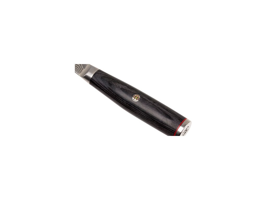 The D-shaped handle provides perfect cutting control and effective support during slicing. The sturdy handle made of exotic Cocobolo Pakka wood is not only perfectly balanced but also dimensionally stable. The dark shade of the wood gives a luxurious impression. The elegance of the dark handle is enhanced by sophisticated decorative elements. The decent decorative line is done in red which in Japan symbolizes passion, sincerity and enthusiasm. The fine detail in the form of a mosaic pin and stainless steel base with logo, will illustrate the atmosphere of the Far East. The perfect balance of the knife brings comfort and prevents hand fatigue. MIYABI 5000FCD knives will fully satisfy your desire for a precision tool of Japanese origin.