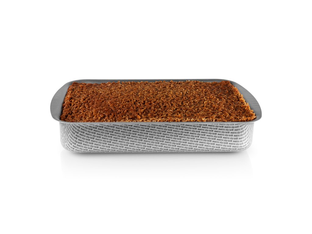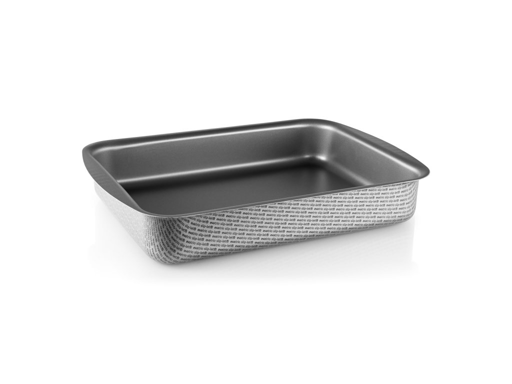 The functional Eva Solo baking dish is designed for baking and roasting savoury and sweet dishes. The non-stick Slip-Let® surface inside ensures that no part of the food will remain on the sides of the baking dish after baking. Use silicone or wooden utensils to avoid damaging the surface of the pan. Dishwasher safe, but we recommend hand washing to maintain longer life.