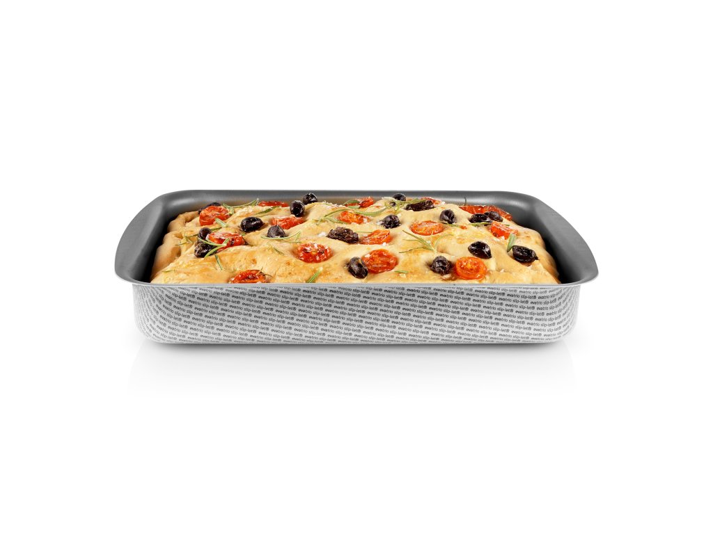 The functional Eva Solo baking dish is designed for baking and roasting savoury and sweet dishes. The non-stick Slip-Let® surface inside ensures that no part of the food will remain on the sides of the baking dish after baking. Use silicone or wooden utensils to avoid damaging the surface of the pan. Dishwasher safe, but we recommend hand washing to maintain longer life.