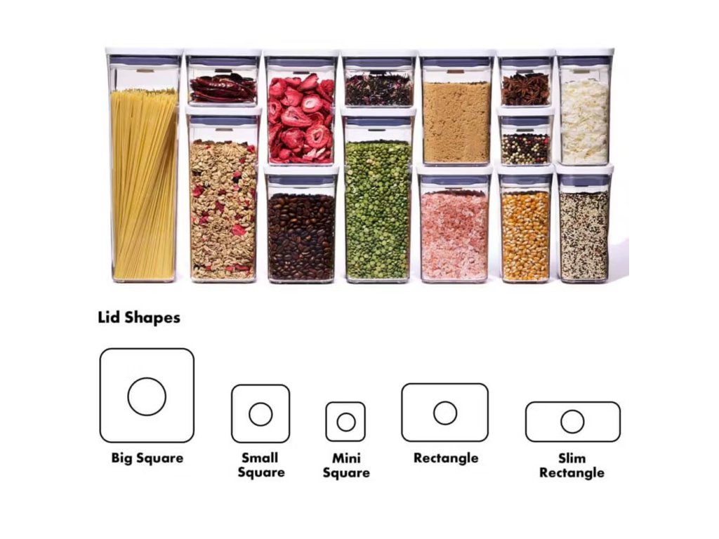 - optional OXO accessories, e.g. measuring cup, can be placed on the underside of the lid