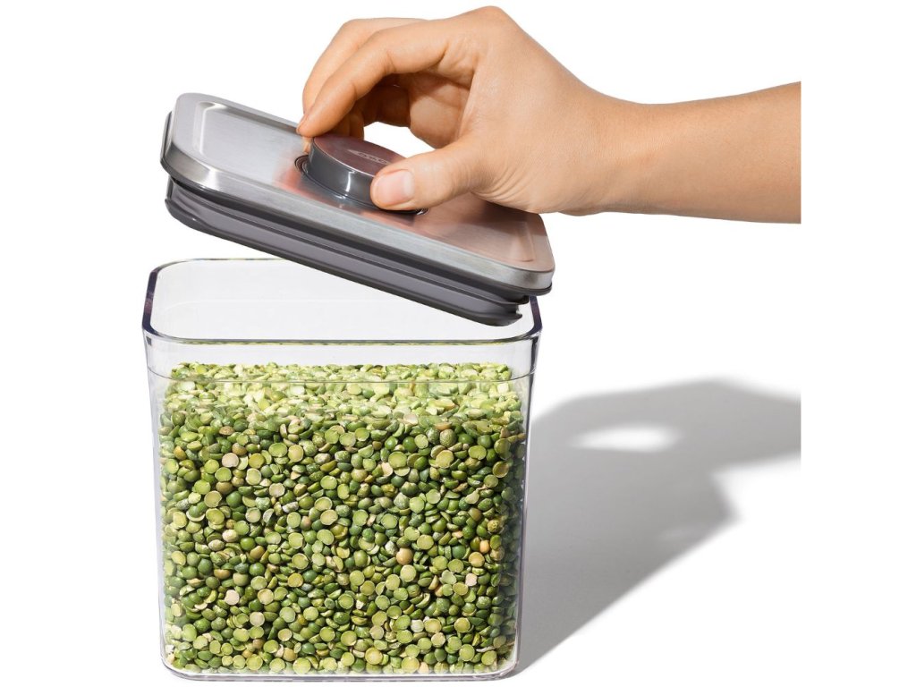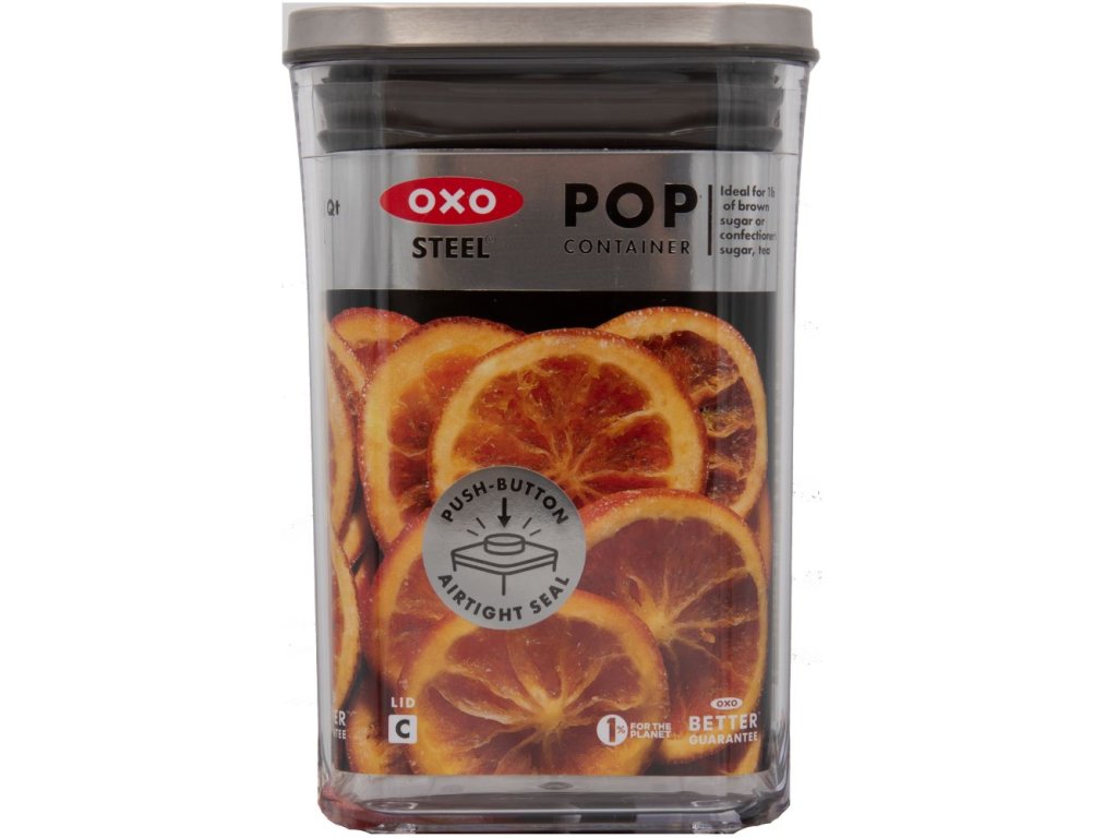 Kitchen storage jar POP STEEL 1,0 l, small square, plastic, OXO