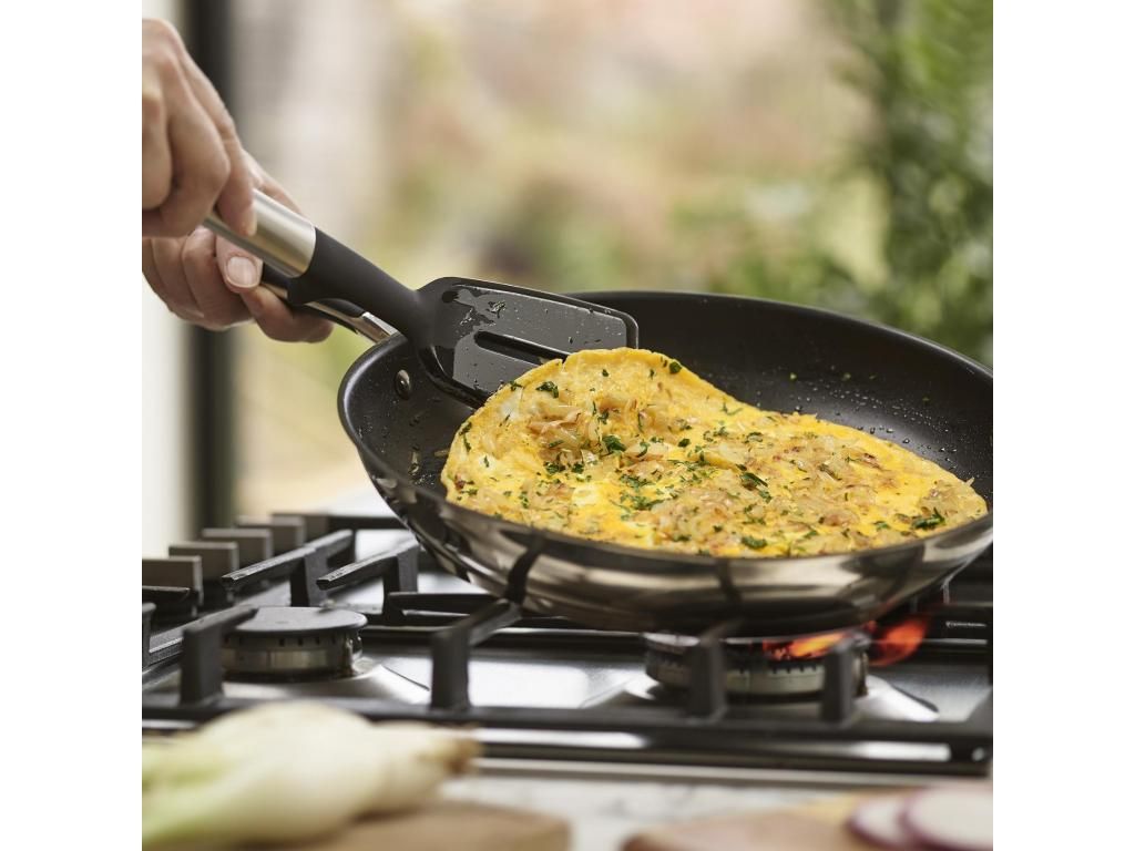 - The ergonomic handle provides a comfortable and stable grip when turning or transferring food during cooking.