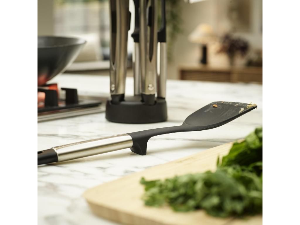 - It offers 5 essential tools for everyday cooking, stored in a compact stand for clear and easily accessible organization on the kitchen counter.