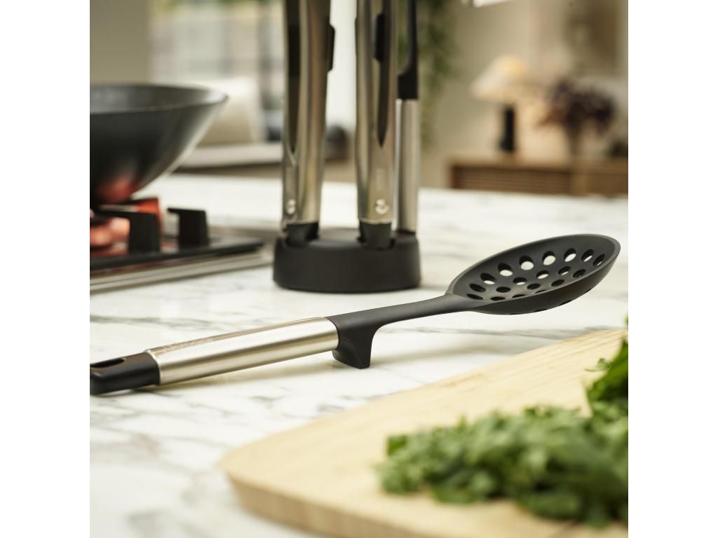 - The set includes a kitchen turner, a ladle, a colander spoon, precision tongs, and large tongs, so you always have the right utensil at hand when preparing various dishes.