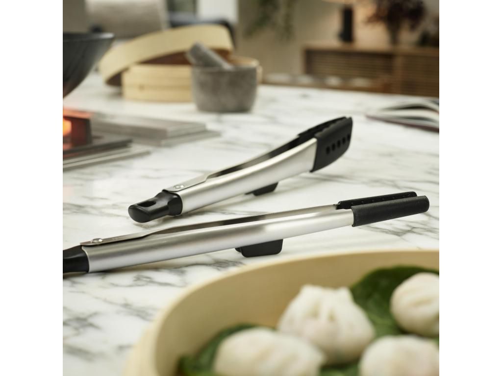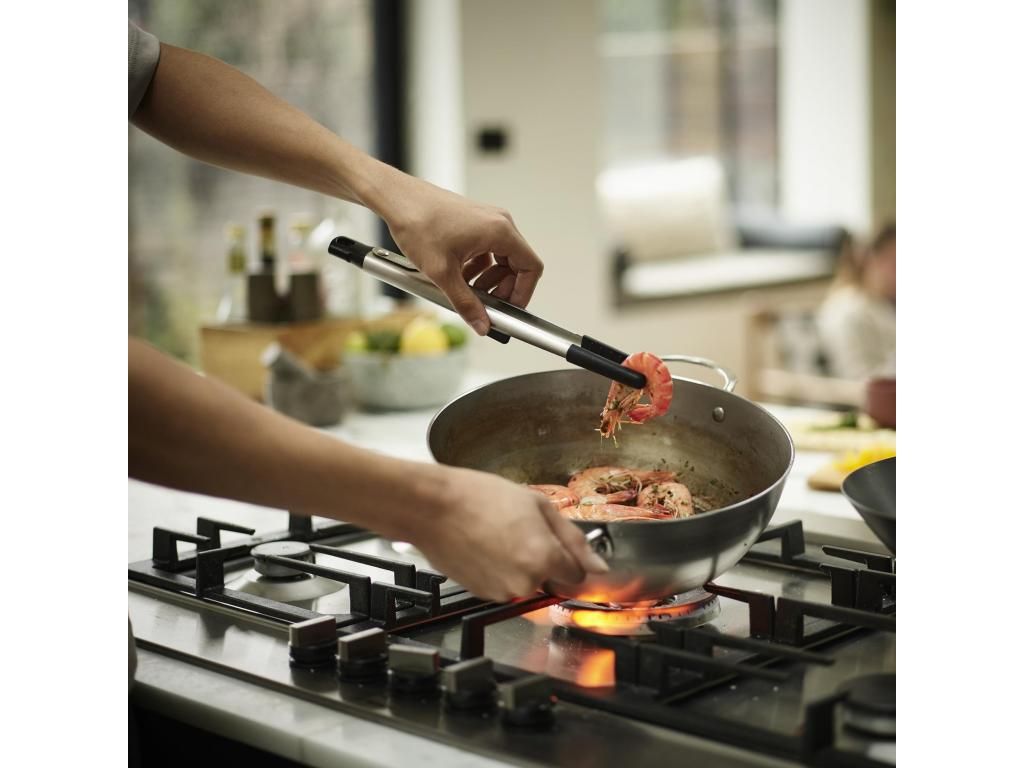 - The silicone ends of the tongs can handle temperatures up to 270 °C and allow for safe handling of hot ingredients during cooking.