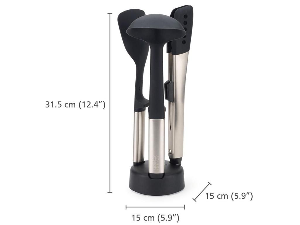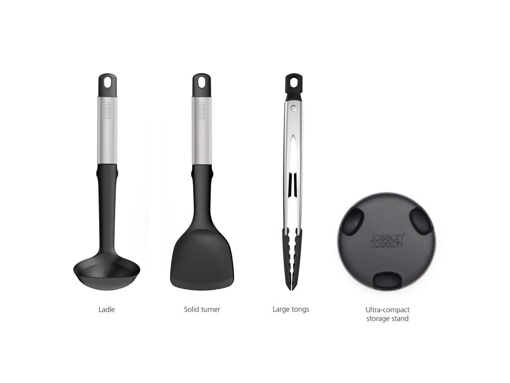 - Joseph Joseph ELEVATE FUSION kitchen utensil set offers a practical solution for everyday cooking and helps keep the kitchen clean and organized.
