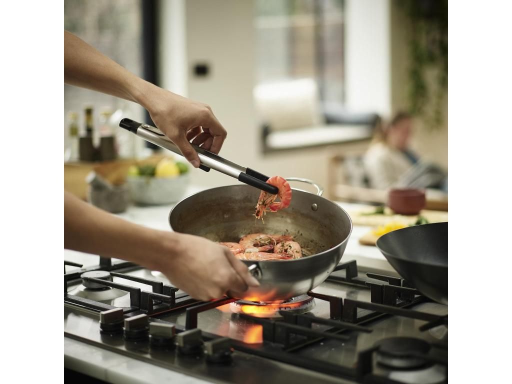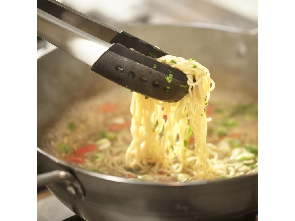 - The silicone ends of the tongs can handle temperatures up to 270 °C and allow for handling hot ingredients during cooking.