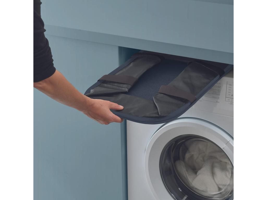 - Thanks to its flat-fold design, you can easily slide it into a narrow space next to the washing machine or store it in a cupboard when not in use.