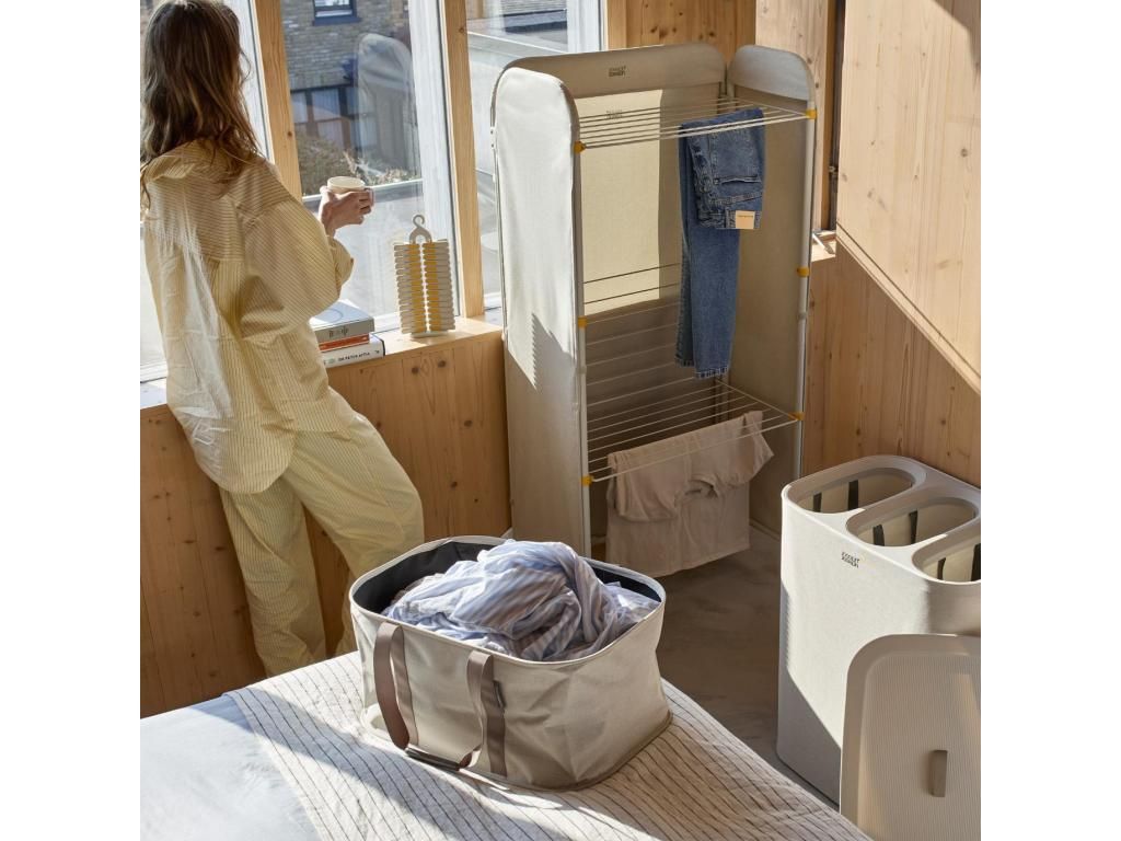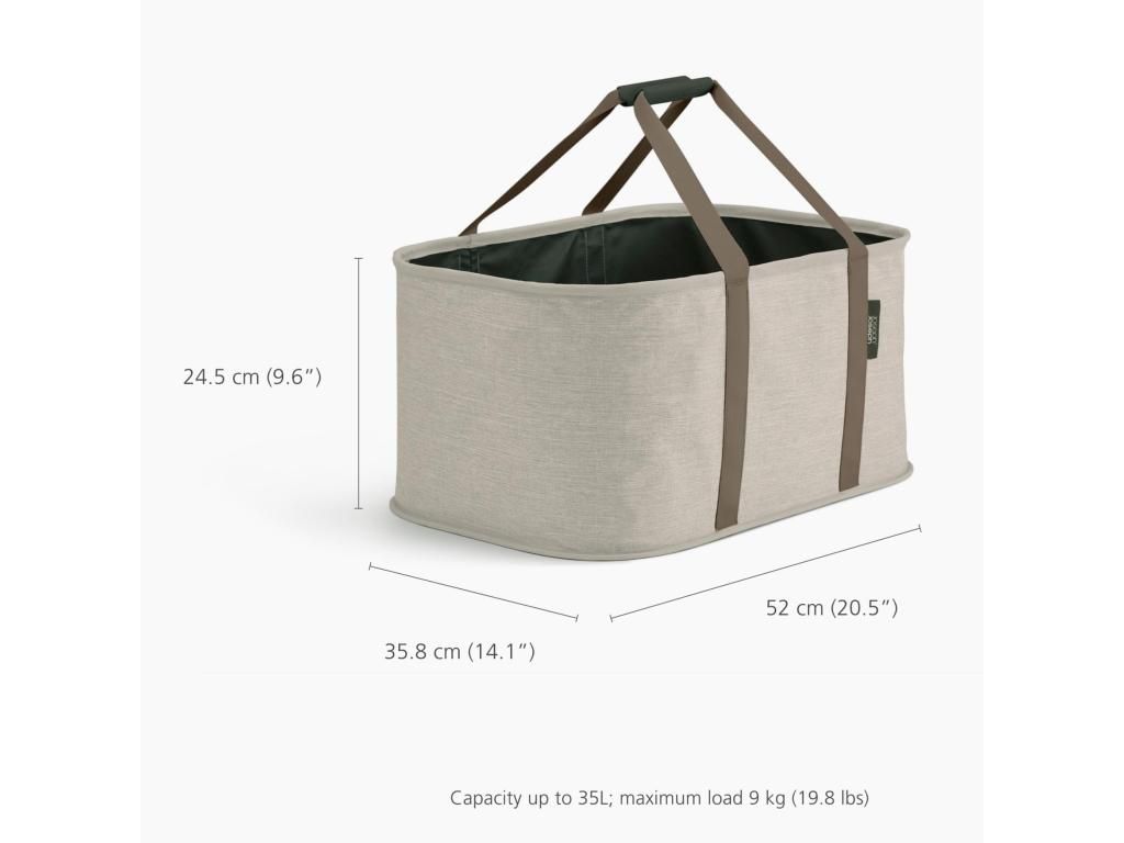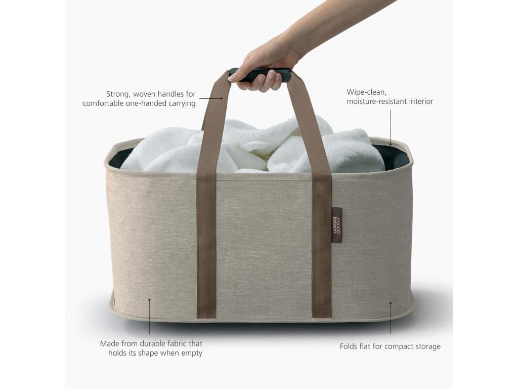 - The Joseph Joseph HOLD-ALL Laundry bag with a capacity of 35 liters offers an elegant and practical solution for everyday laundry transport between the bedroom, bathroom, and washing machine.
