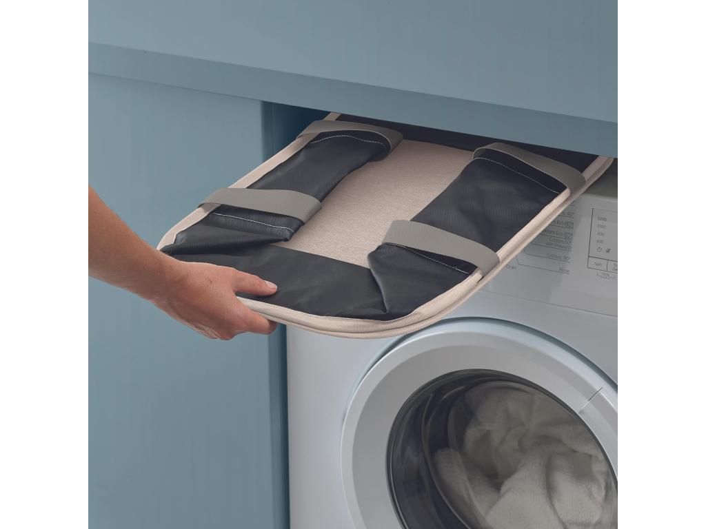 - Thanks to its flat-fold design, you can easily slide it into a narrow space next to the washing machine or store it in a cupboard when not in use.