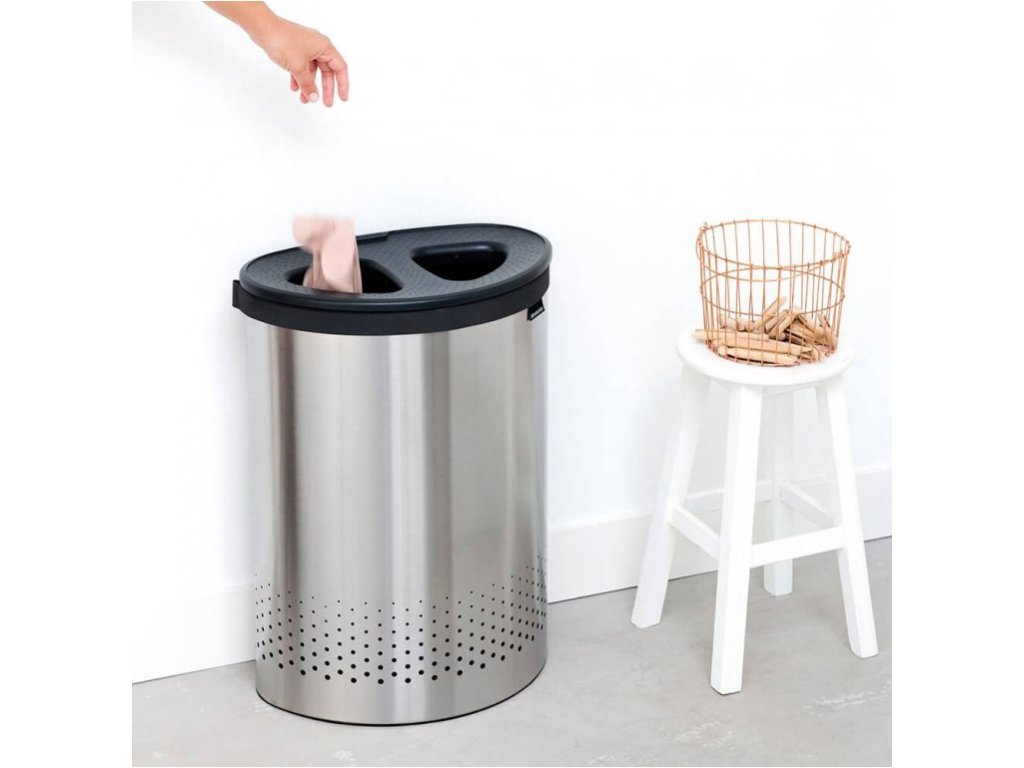The Brabantia Selector laundry basket offers a practical laundry storage solution for your apartment or family home. The double-opening lid offers a clever Quick-Drop opening that means you don't have to take the lid off or remove it. Smaller pieces can be inserted straight through the lid, for larger ones, just open the lid and it will stay on the edge of the basket. Inside the basket there is a two-compartment cotton laundry bag with velcro fastening, then a protective ring on the underside for the right stability.