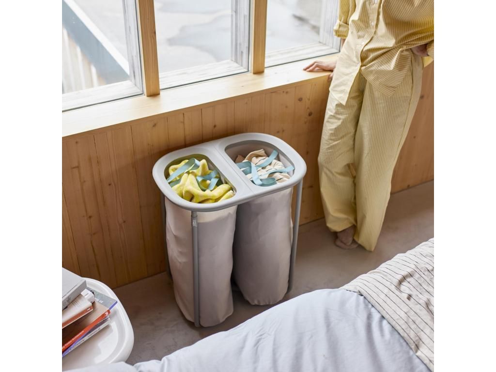 - Two separate inner bags with a volume of 40 litres allow for easy separation of light and dark laundry or, for example, delicate textiles from regular clothing.