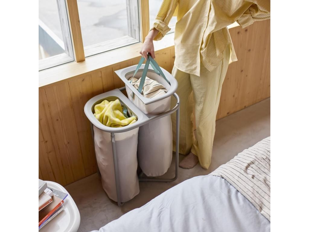 - The Laundry bin Joseph Joseph DUO with a total volume of 80 litres is designed for convenient and clear sorting of laundry during storage.