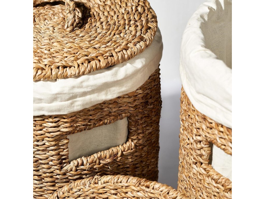 - baskets with lids are made of seagrass with cotton liner