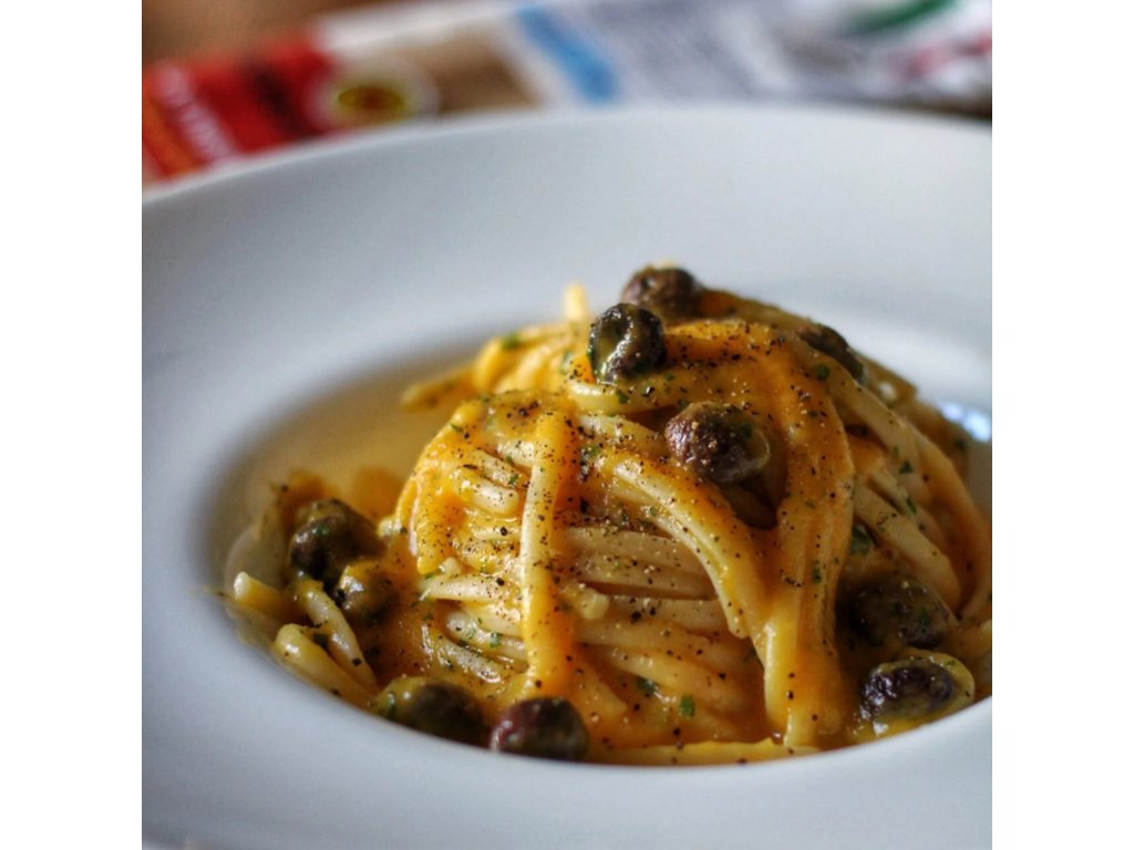 - The pasta is pulled through a bronze matrix, so the surface remains slightly rough and the sauce catches on every unevenness for a more pronounced flavor.