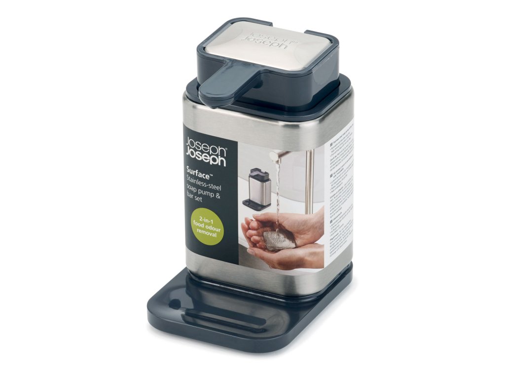 Sink caddy SURFACE™, with soap dispenser, stainless steel, Joseph Joseph