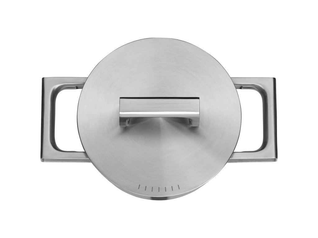 - The double-walled stainless steel pot lid is equipped with a hidden steam vent, which is suitable for use with side-mounted extractor hoods.