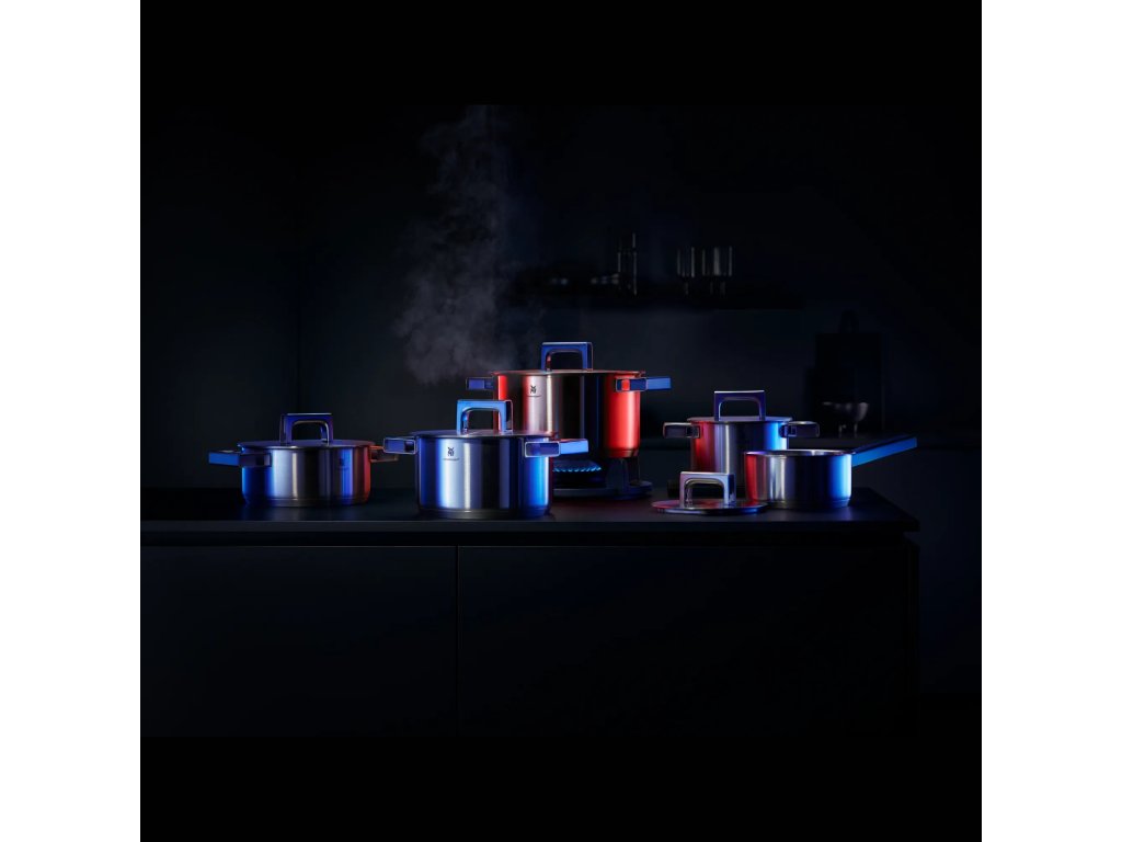 - The matt satin finish of the stainless steel combined with the distinctive handles creates a modern and technically clean look for the kitchenware.