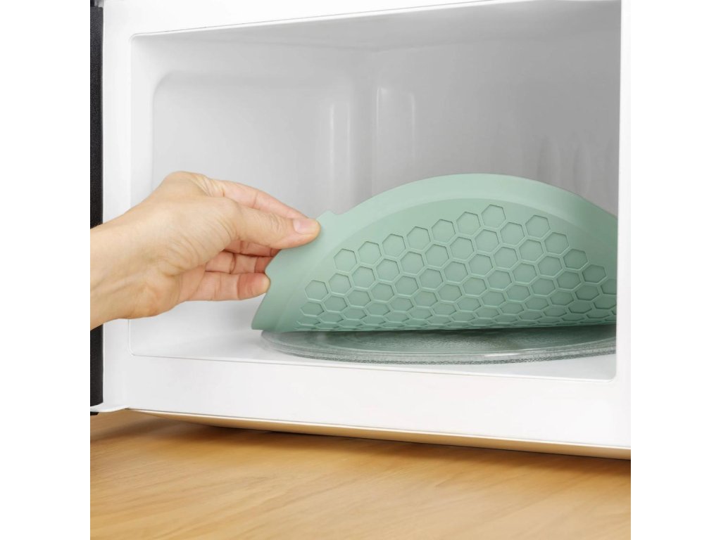 There's a special type of fatigue where you just want a hot meal, but you definitely don't want to clean up the microwave after it like a little fireworks display. This is where the green pad comes in, which looks inconspicuous but acts like security at a concert. It catches drips, helps keep things tidy and gives you more time to eat - not scrub.