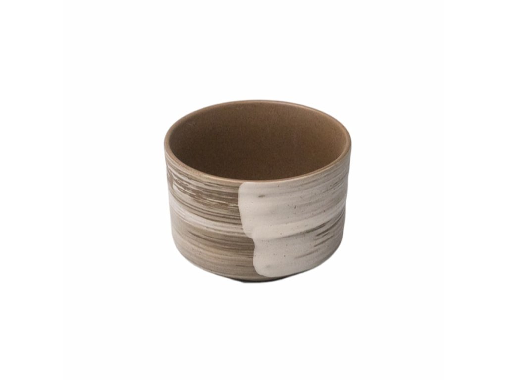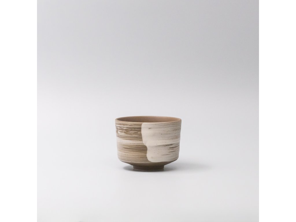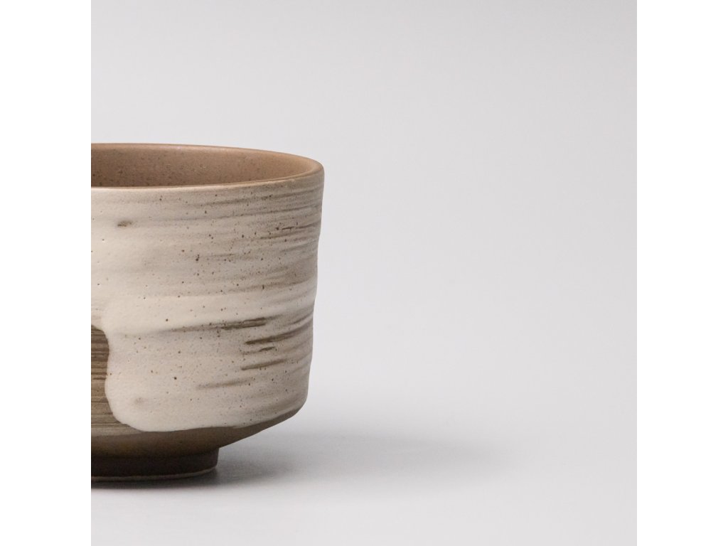 - The earthy brown surface with a distinctive white stroke of the glaze has a contrasting effect and brings a distinctive visual moment to the tea ritual.