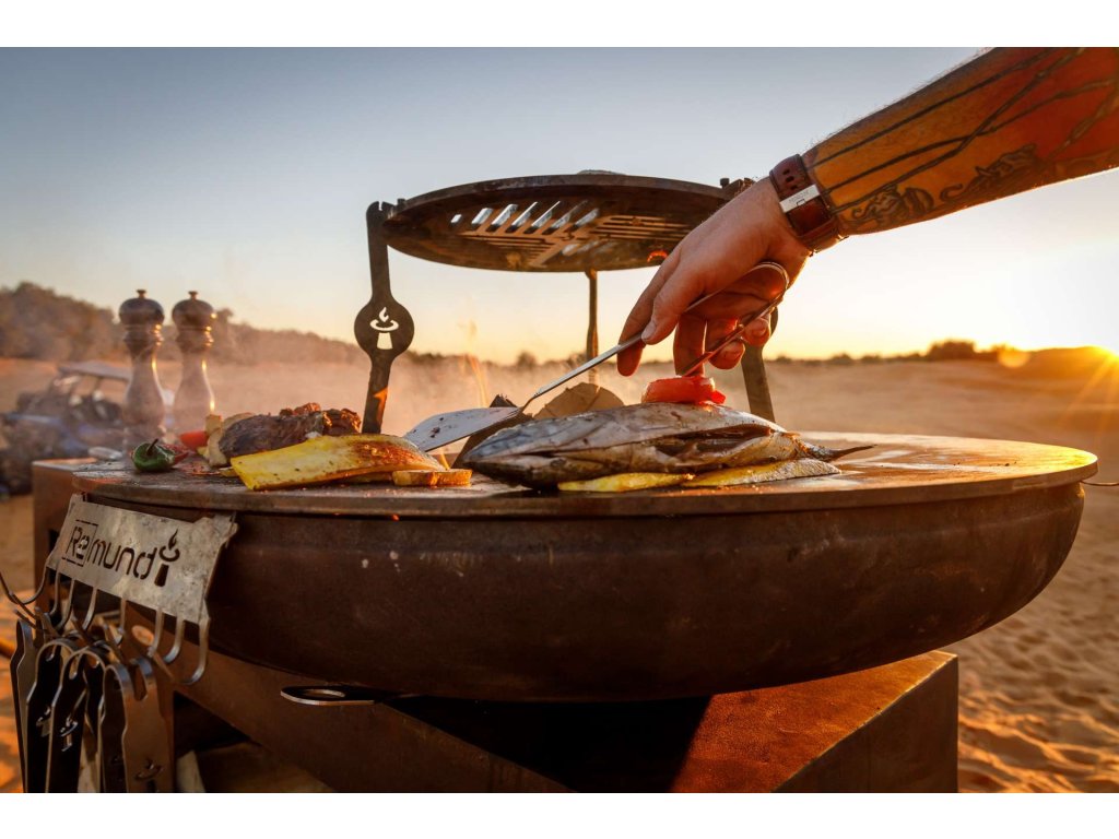 The wide plate with special geometry heats up to 300°C. With different temperature zones, it also allows you to prepare multiple dishes at different grilling temperatures at the same time. You can use both charcoal and wood in the grill and enjoy grilling or open fires all year round.