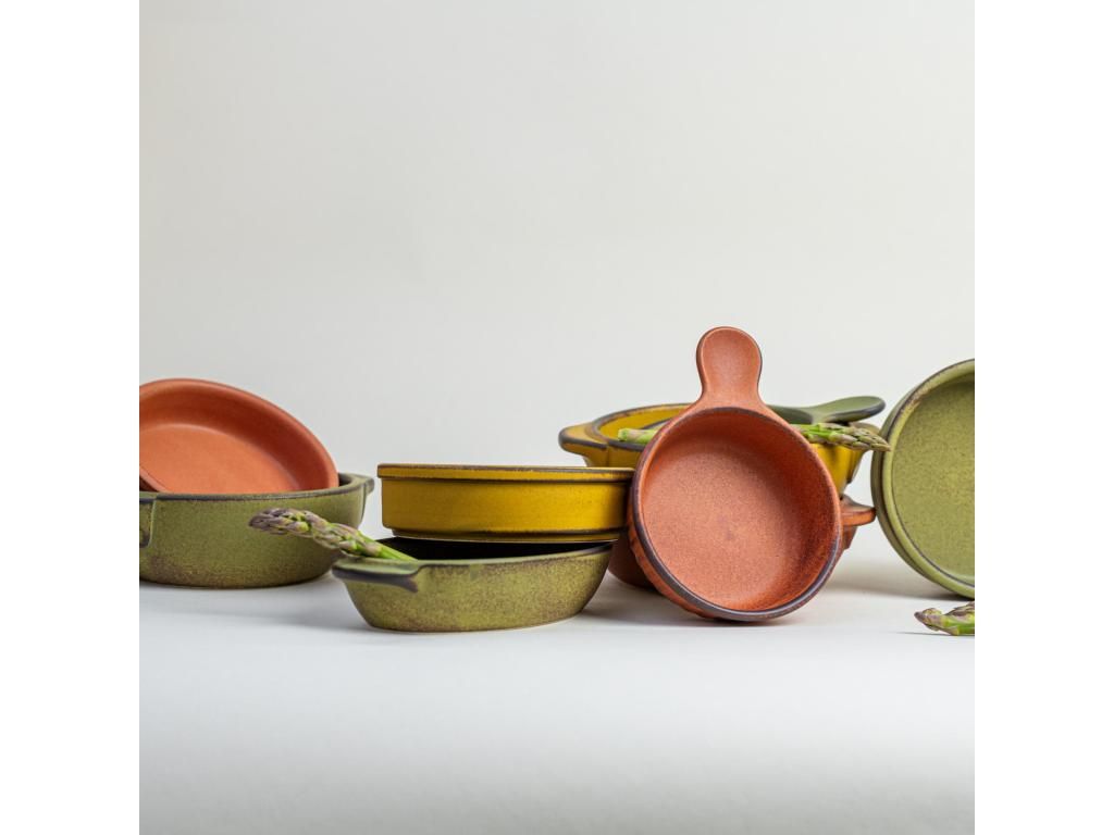 - The Green glaze with a subtle burn creates a rustic feel and goes well with both simple and more substantial dishes.