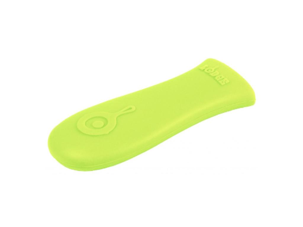 - The green silicone handle cover Lodge is a practical aid when handling hot cast iron cookware and provides protection up to 260°C.