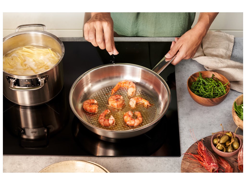 - excellent thermal conductivity for energy-efficient cooking thanks to the aluminium core