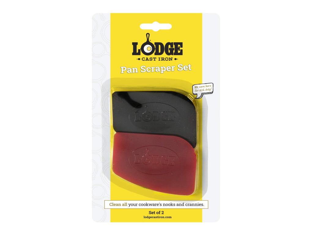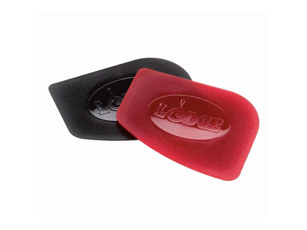 - Set of two solid polycarbonate scrapers Lodge (red + black) designed for cleaning smooth cast iron surfaces without damaging the fired layer.