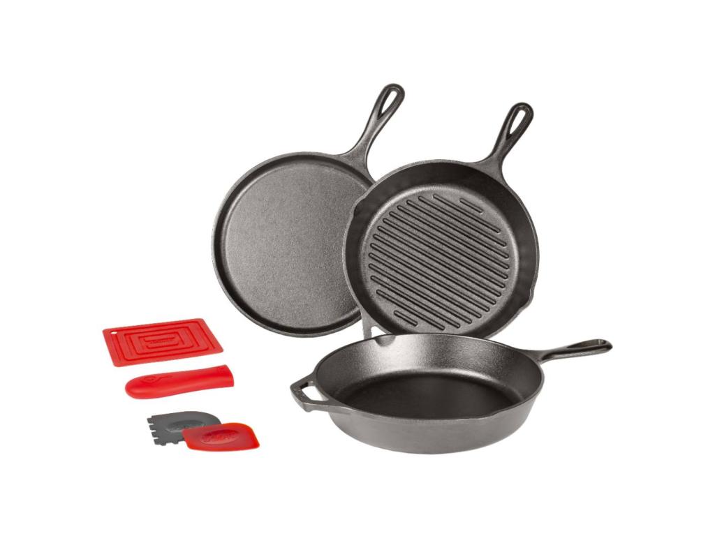 - The cast iron cookware set Lodge is the ideal solution for anyone who wants to have complete equipment for cooking, baking and grilling at home and outdoors.
