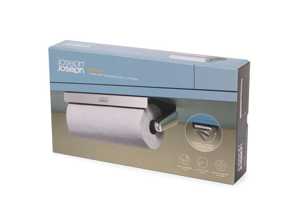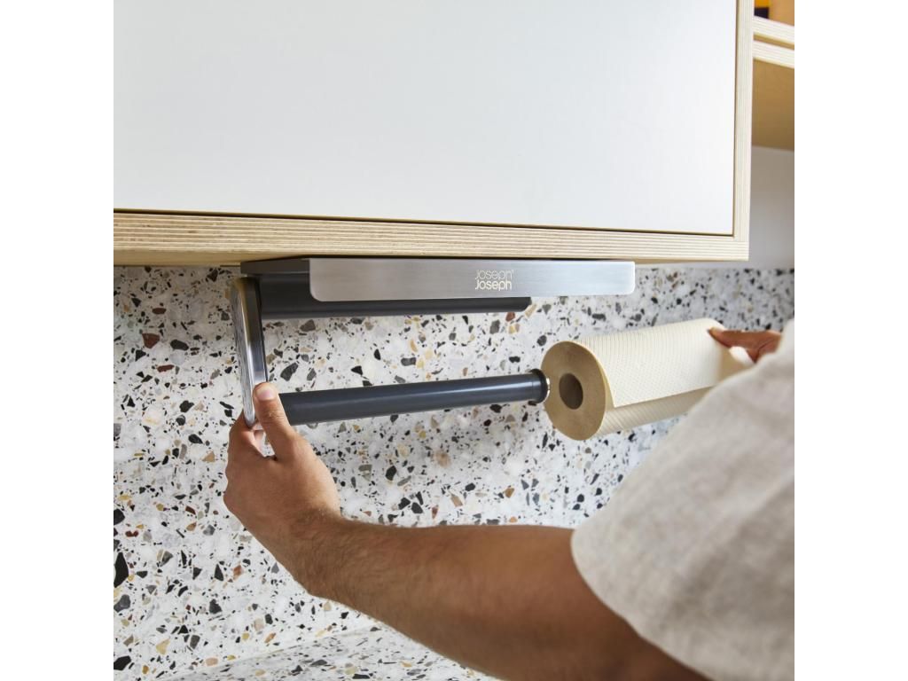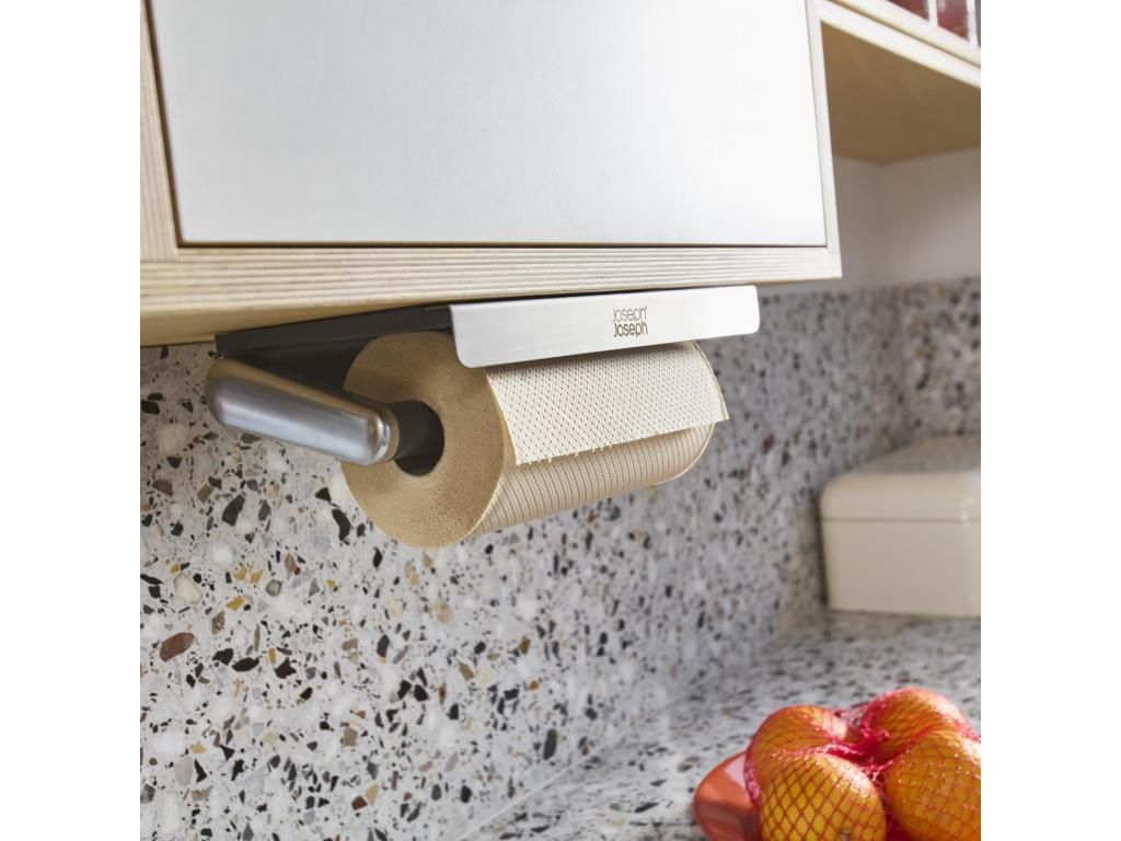 - The Paper towel holder made of stainless steel ROLLGRIP is a practical solution for freeing up counter space and neatly storing paper towels directly under the upper cabinet.