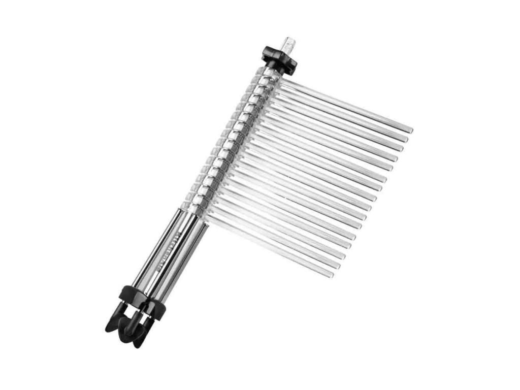 The KitchenAid pasta dryer saves countertop space and helps dry pasta quickly and evenly. It is equipped with 16 holders with a length of 20 cm, so when the base is unfolded, you get up to three meters of total surface area for drying pasta. The wand, cleverly housed inside the centre bar, can be used to catch wide or semi-wide noodles coming out of the pasta machine. With its help, you can easily transfer fresh pasta to the drying rack.