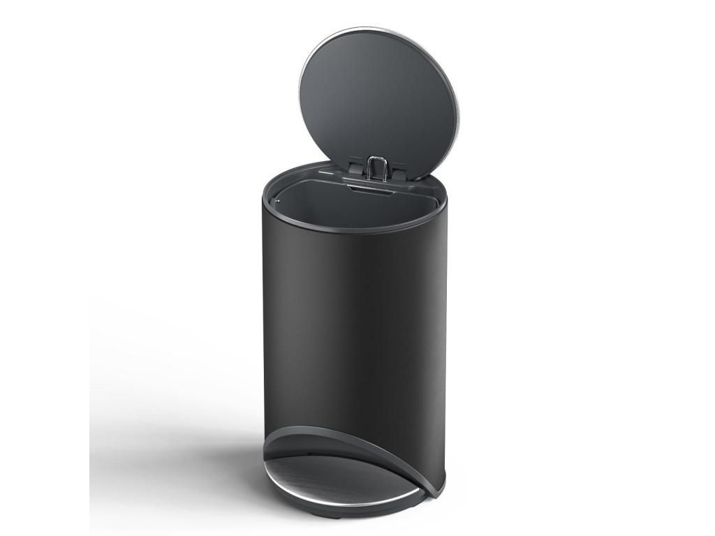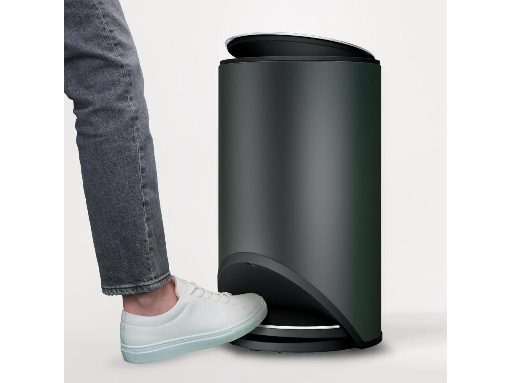 - The thoughtful round design allows the pedal to fit directly into the bin's footprint, taking up no extra floor space.