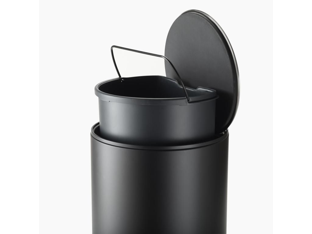 - The ARC Pedal bin in an elegant black finish serves as a practical and stylish solution for hygienic waste disposal in the kitchen, bathroom, or workspace.