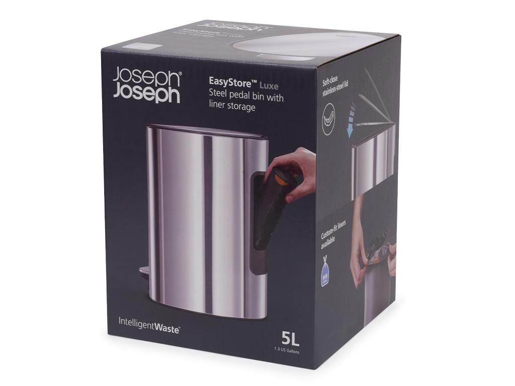 - A 5-litre capacity and compatibility with custom-fit Joseph Joseph IW8 bin liners ensure convenient operation and easy liner changes without excess edges.