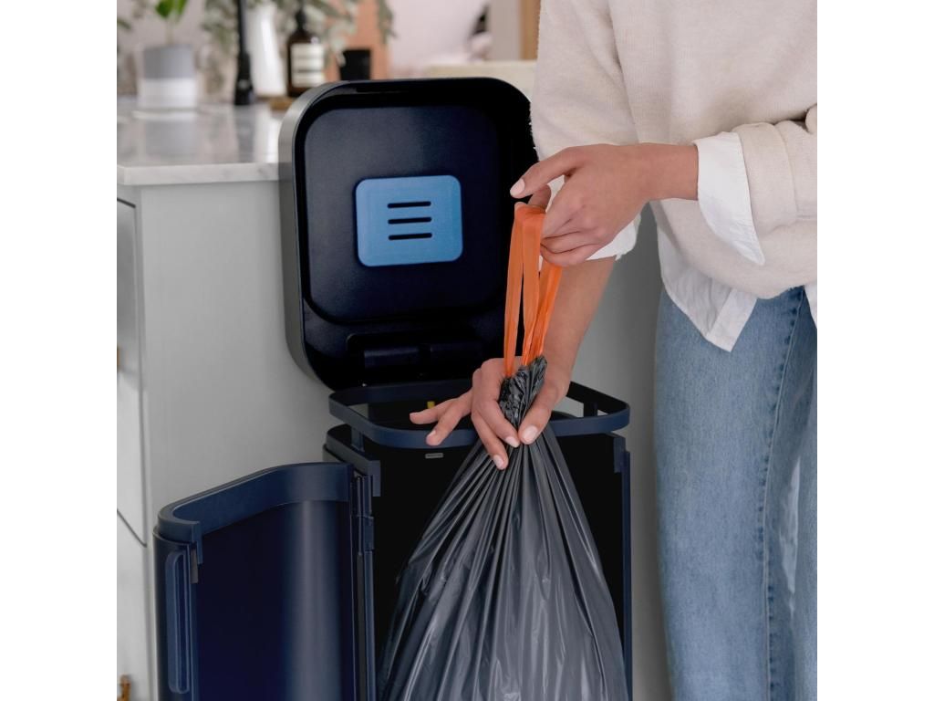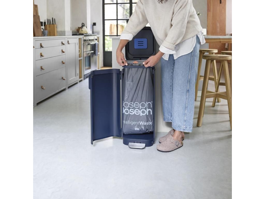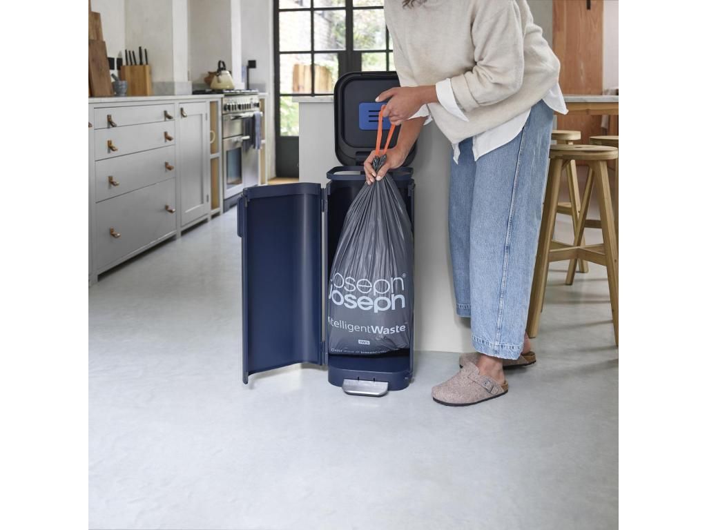 - The bin is compatible with Joseph Joseph IW5 bags with a capacity of 40 liters, but standard-sized bags can also be used.