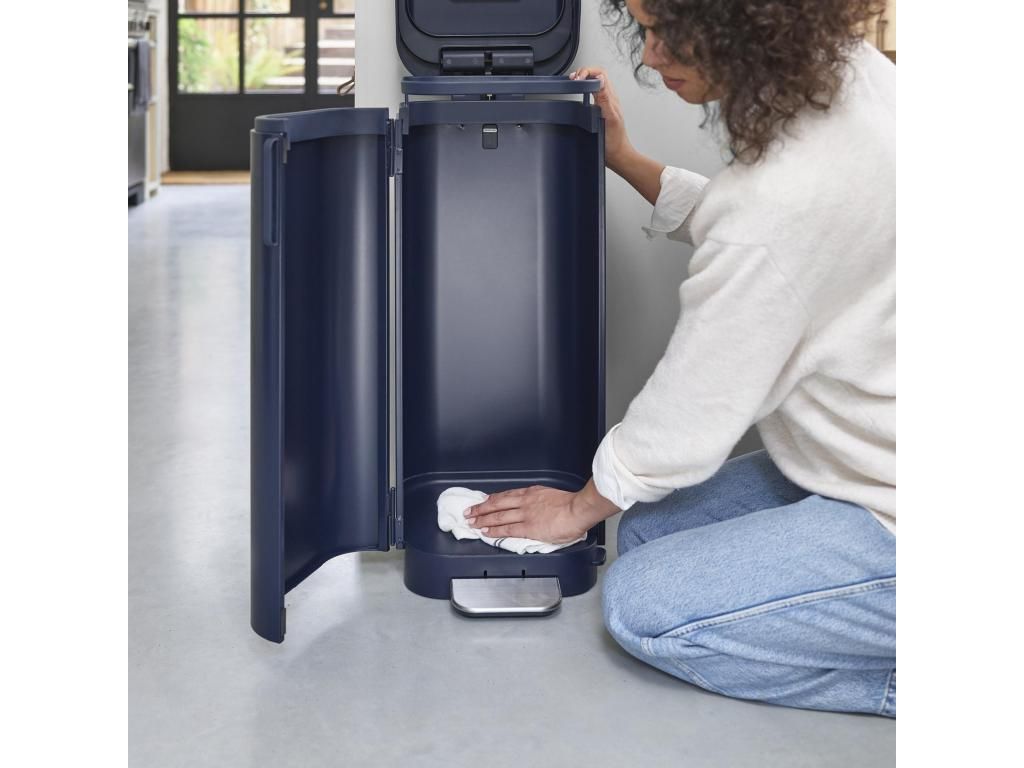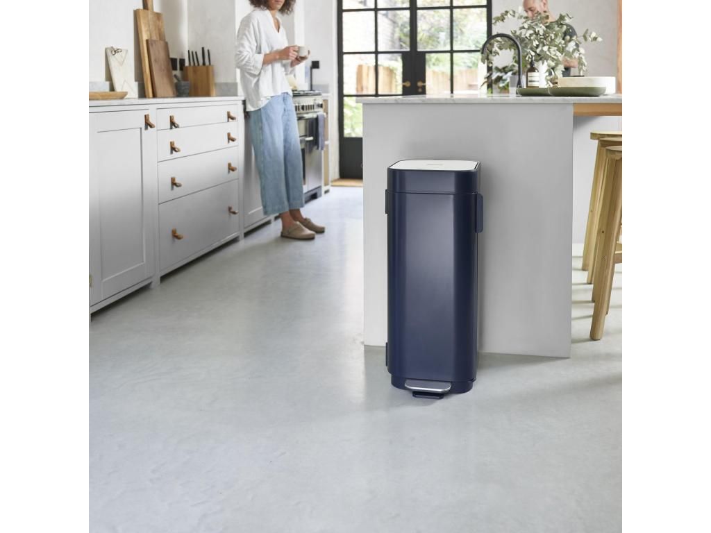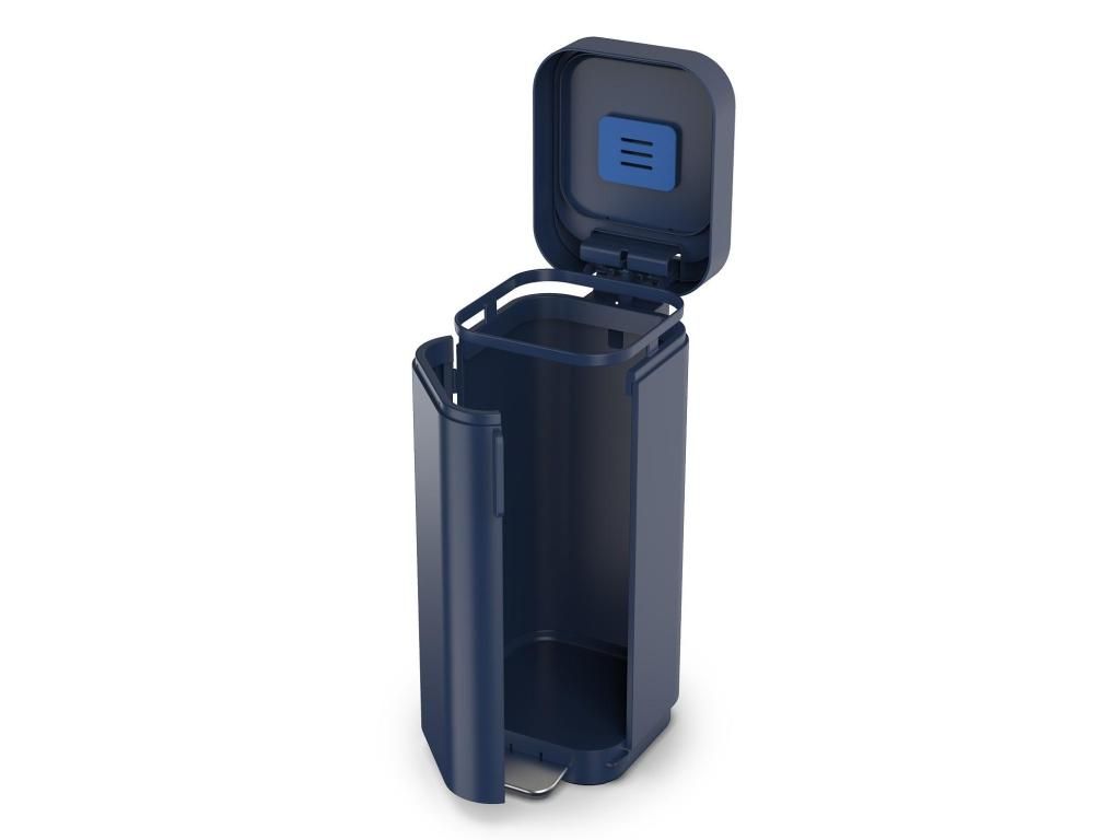 - The PORTA Pedal bin in a modern blue design offers a practical and hygienic solution for everyday waste management in the kitchen or home.