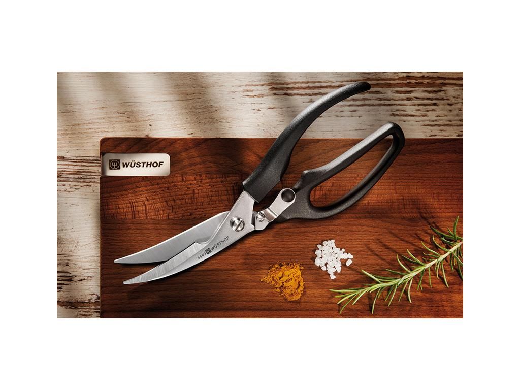 Poultry shears are a great helper at home and in a professional kitchen. They are perfect for carving poultry such as chickens, ducks, turkeys or geese. Easy to skin and cut meat with them. Thanks to the ergonomically shaped handle, you will work comfortably and safely. In addition, the safety lock prevents the blades from being opened unintentionally and causing injury.