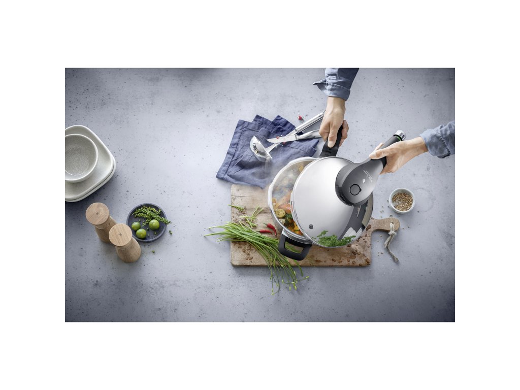 - Two preset pressure levels for gentle cooking of vegetables and quick cooking of meat