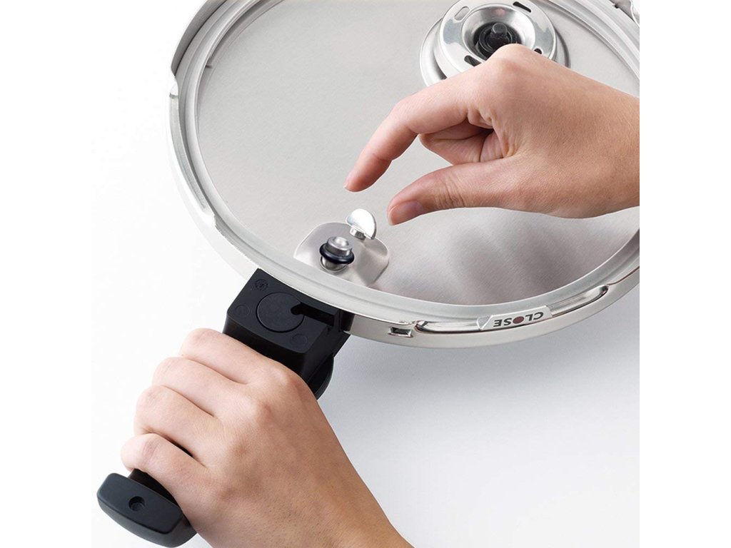 - mechanical pressure indicator for safe opening, which is colour-coded according to the pressure inside the pot