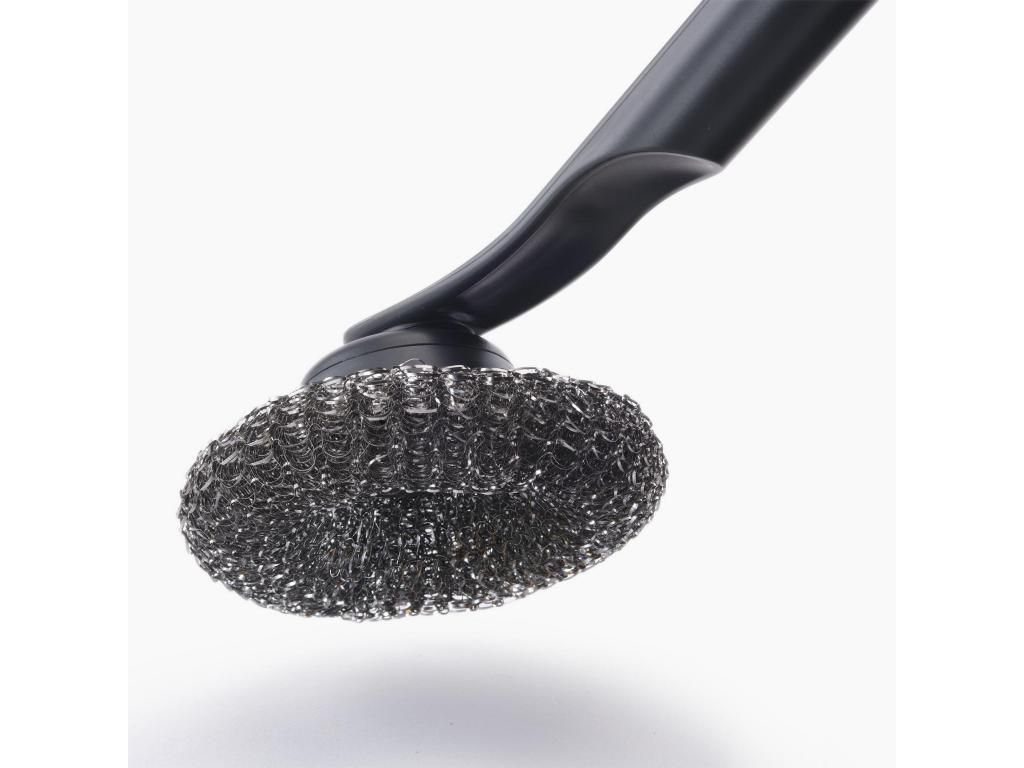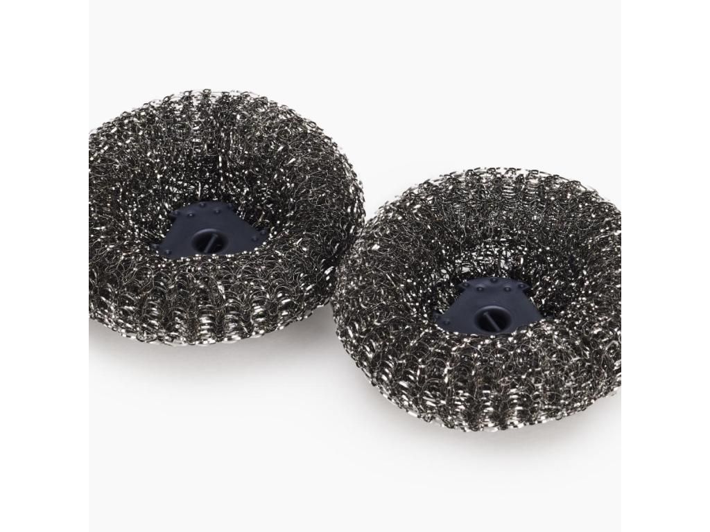 - The stainless steel construction provides high abrasive efficiency in removing burnt-on food residues.