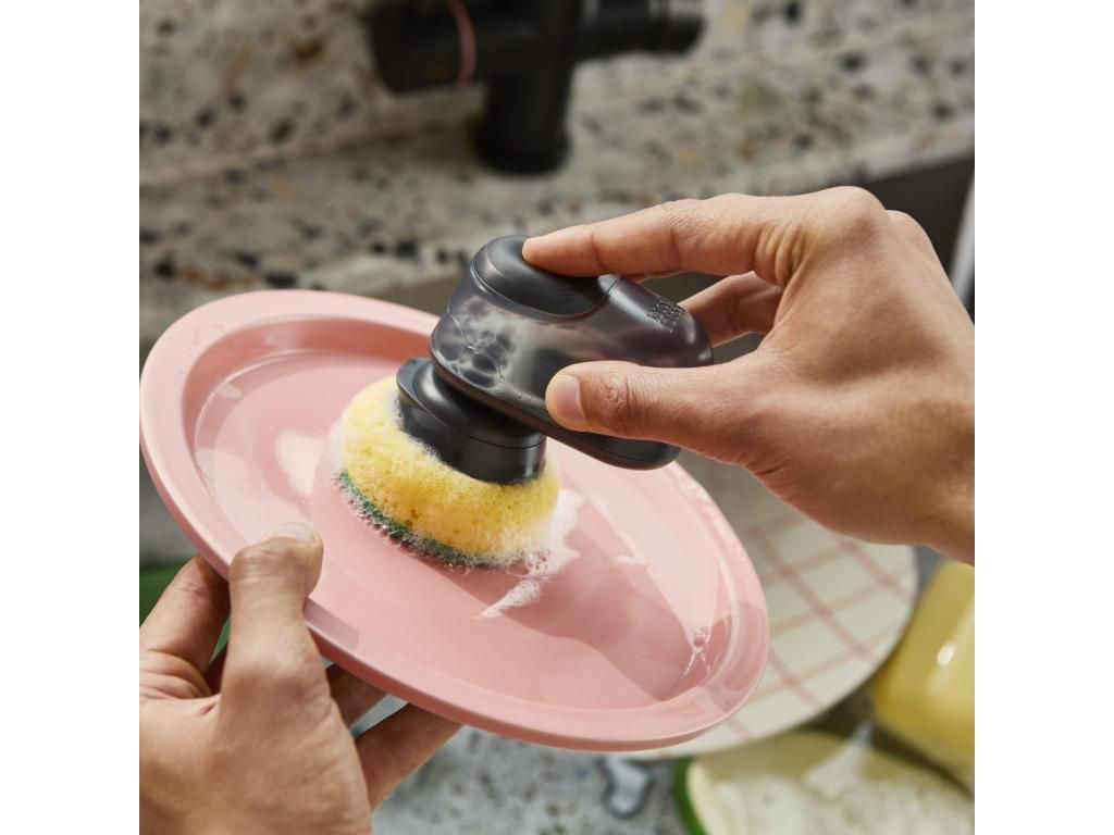 - The circular shape of the head facilitates cleaning even in curved parts of dishes.