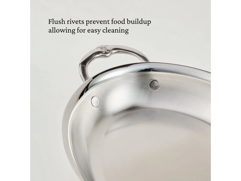 - The internal rivets are recessed into the surface plane, which greatly facilitates cleaning and prevents food residues from sticking.