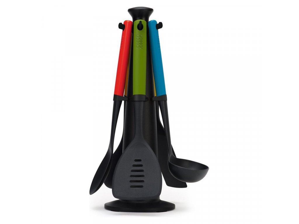 Duo is Joseph Joseph's innovative range of kitchen essentials that brings ingenious solutions to every kitchen. The range is carefully designed with an emphasis on simplicity, innovation, functionality and quality. Each product in this range is made from high quality materials and in a wide range of colours, so you can match them to your interior or other kitchen accessories and utensils. The range includes, for example, this handy rack with kitchen utensils - 2 turners, 2 cookers and a ladle, all with a support to limit contamination of the work surface.