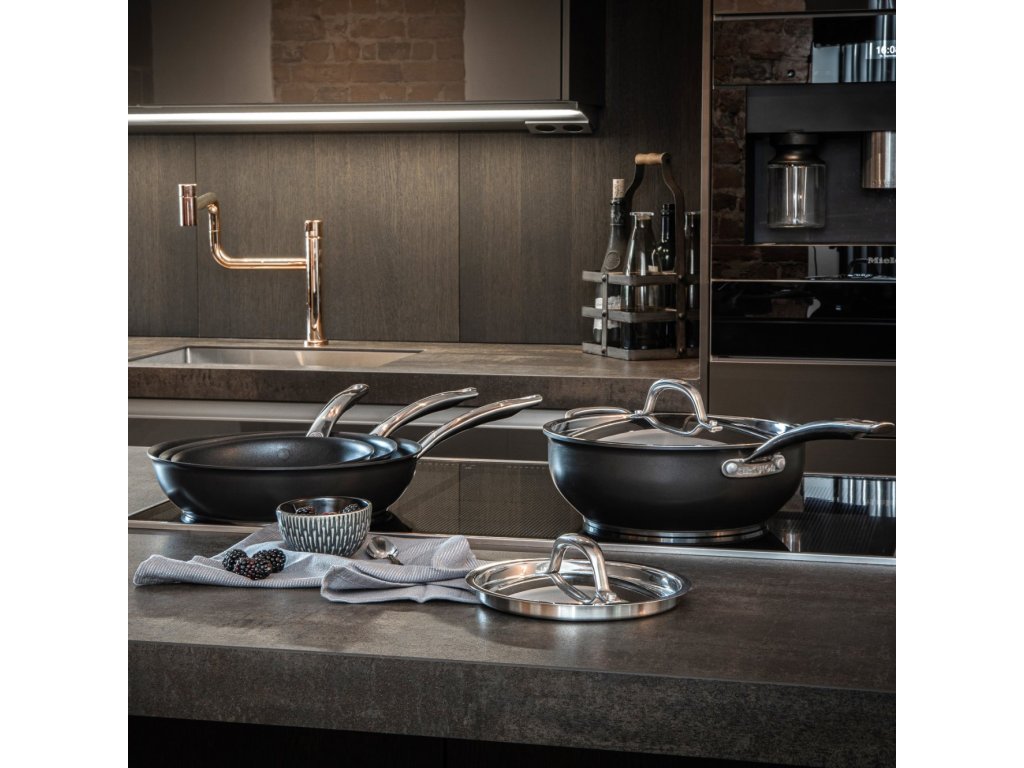 - set of 3 professional non-stick pans and griddle, designed for peak cooking performance, allowing creativity and confidence in the preparation of every dish