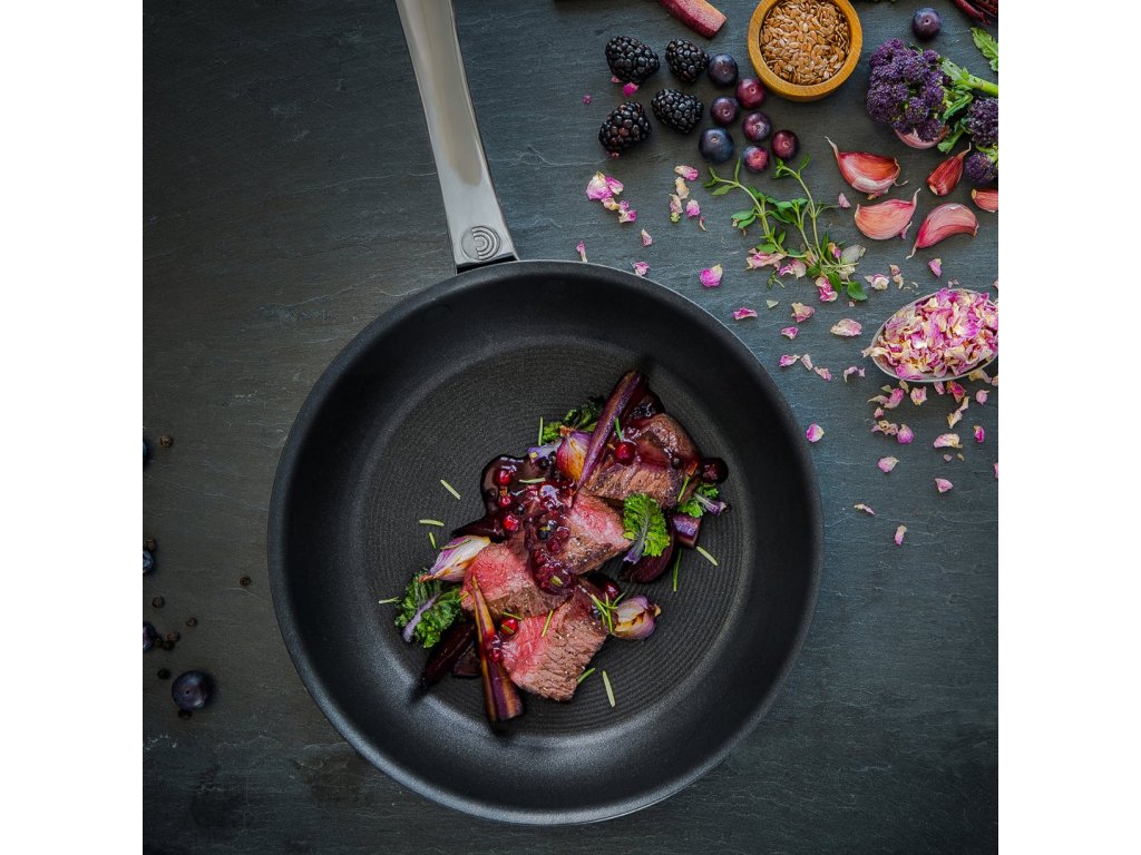 - oven-safe up to 260 °C allows food to be finished directly from the hob to the oven without the need to transfer to another container