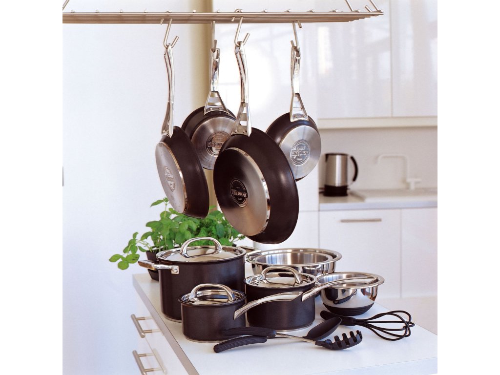 - sleek, sturdy and ergonomically shaped handles in polished stainless steel provide a comfortable grip and stay cool even during prolonged cooking