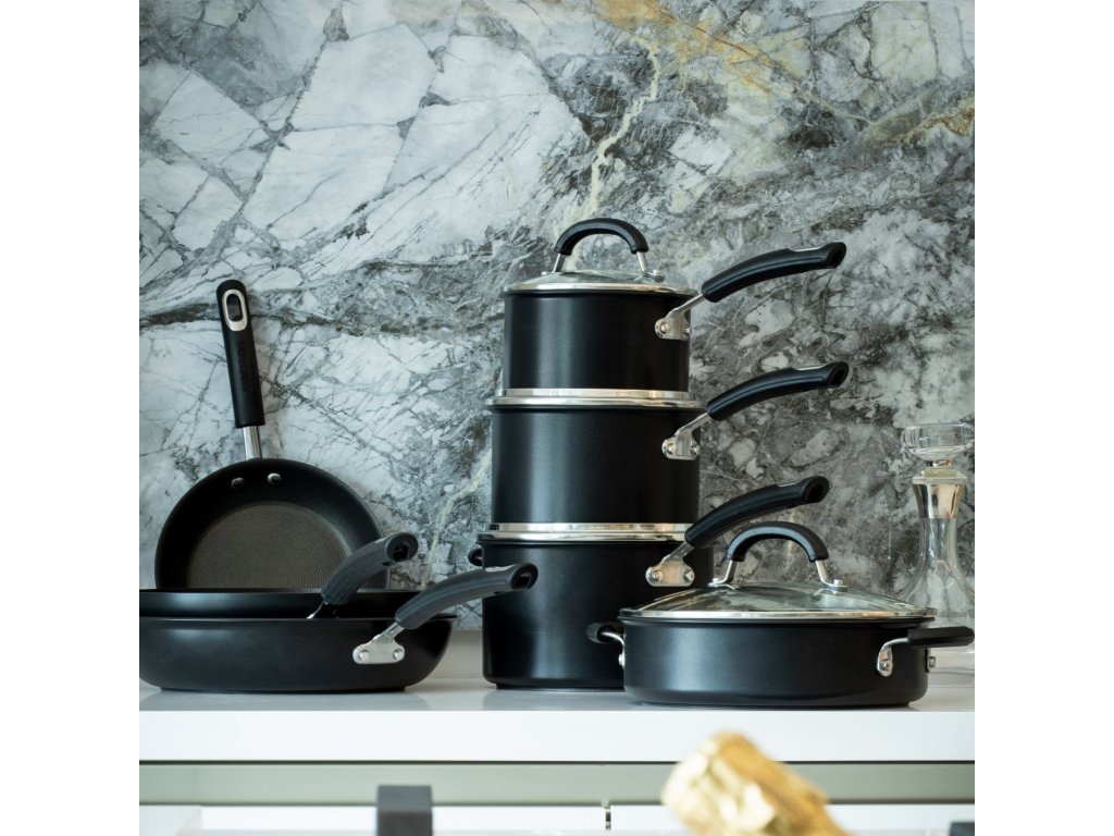 - modern design with matt finish gives the pans a sleek look and professional performance that fits any kitchen