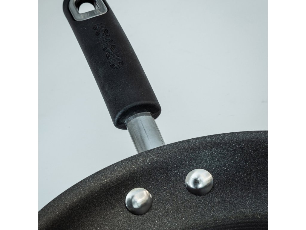 - hard-anodized aluminum construction provides excellent durability and ensures even heat distribution, eliminating hot spots and preventing food from burning